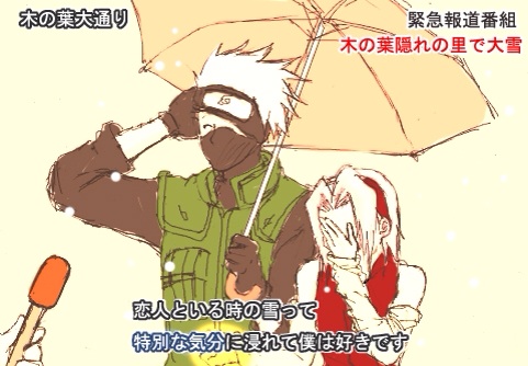 で、描いてるときなんも考えてなかったんですが、あとになって妄想した雪カップルカカサクネタ。