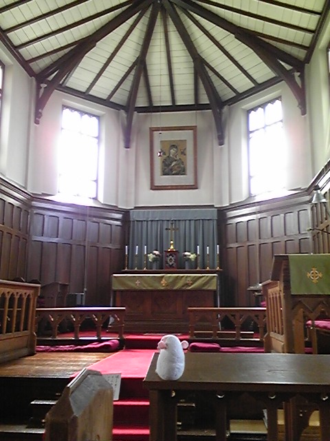 キリスト教会なのに、畳みたいな。不思議な空間。