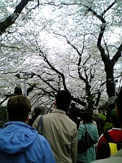 金曜の段階ではちょっとしょぼい?と思ってしまったのですが、今日はすっかり満開、日曜と言うことですごい人手でした(もちろん千鳥ヶ淵とは比べ物になりませんが)。